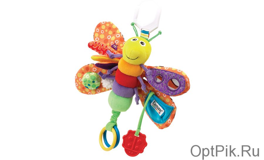 При помощи специального пластикового карабина вы сможете пристегнуть бабочку к кровати или коляске. Разноцветный веселый мотылек надолго увлечет вашего малыша. Игрушку можно стирать в стиральной машинке.