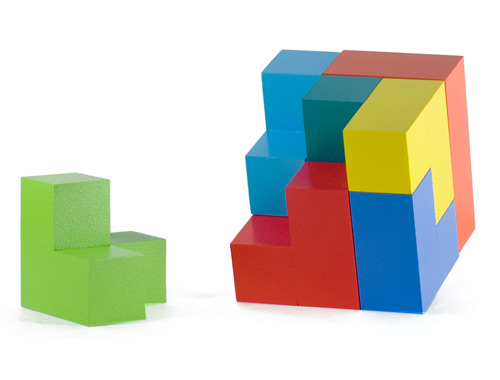 Интерес. Набор включает в себя 7 окрашенных деталей, которые представляют собой склеенные кубики. Головоломка имеет множество вариантов сборки, поэтому ребенку будет интересно играть в нее снова и снова.