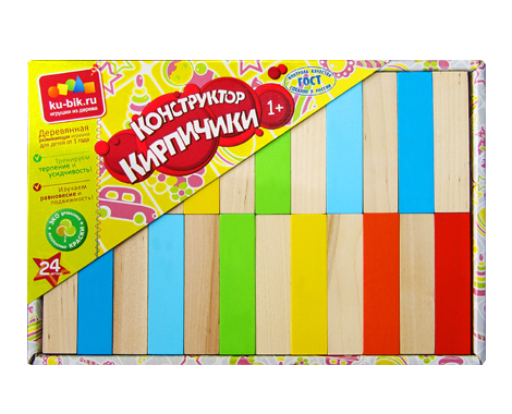 Надежность игрушки.Набор <<Кирпичики>> изготовлен из прочного и долговечного материала - дерева, а значит, прослужит долгое время, радуя Вашего малыша!